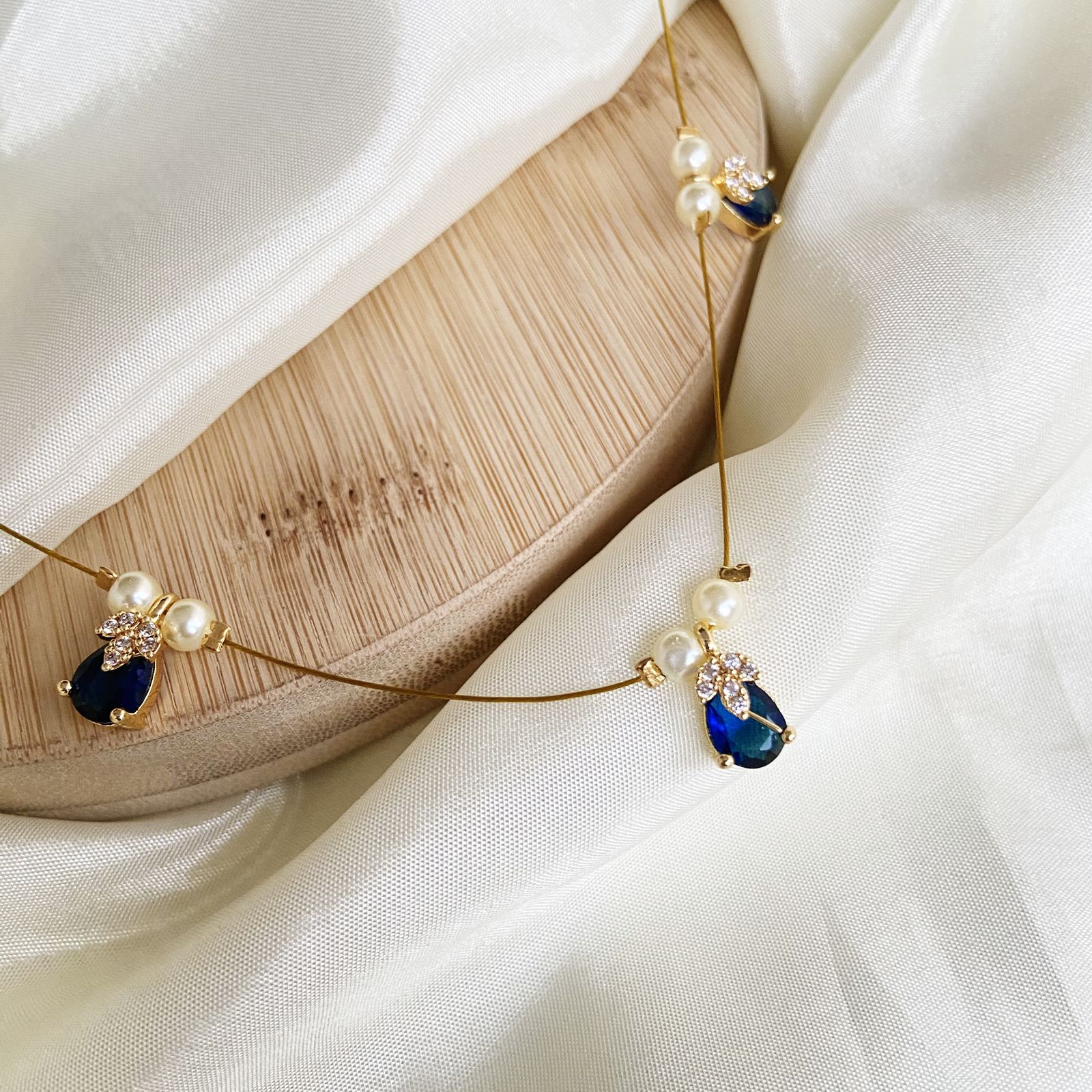 Blue Topaz Abha Invisible Chain Choker Necklace
