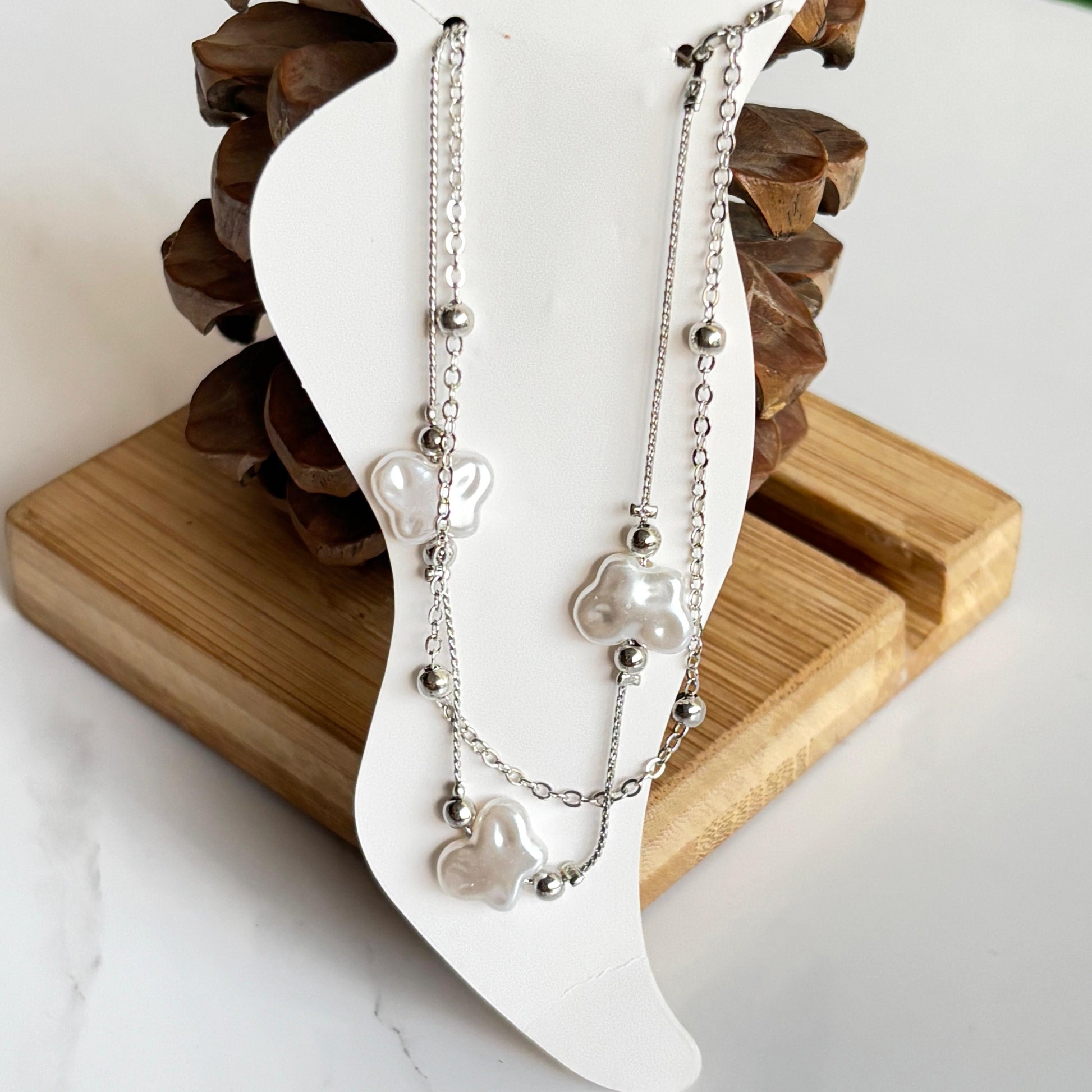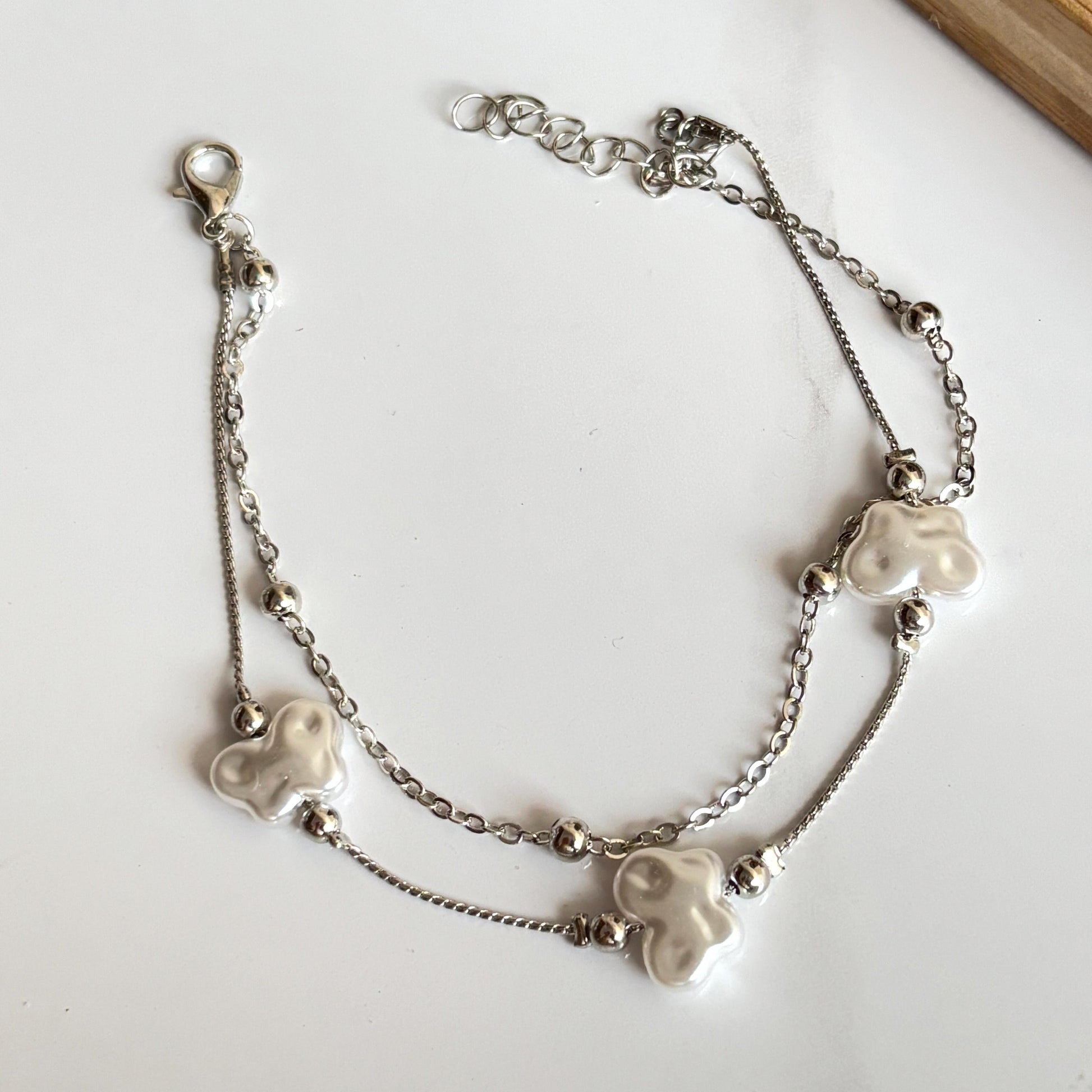 Fresh Pearl Butterfly Layered Anklet (Silver)