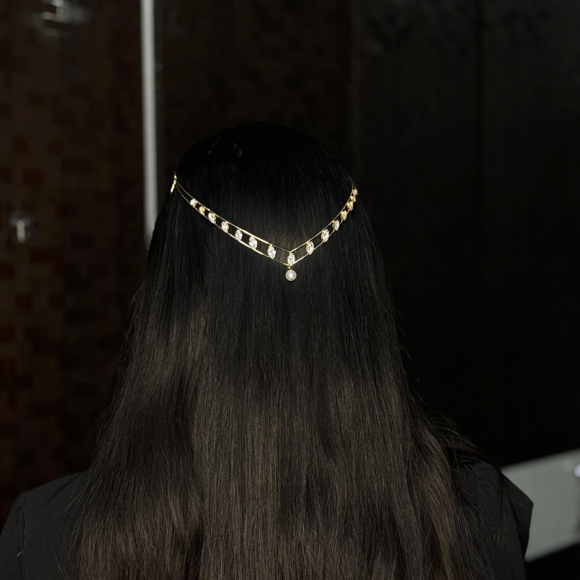 A crown made for today's queen. This flowing, beaded piece forms a soft, crown-like shimmer that shines beautifully with relaxed waves. It's graceful, dreamy, and guaranteed to steal the spotlight.