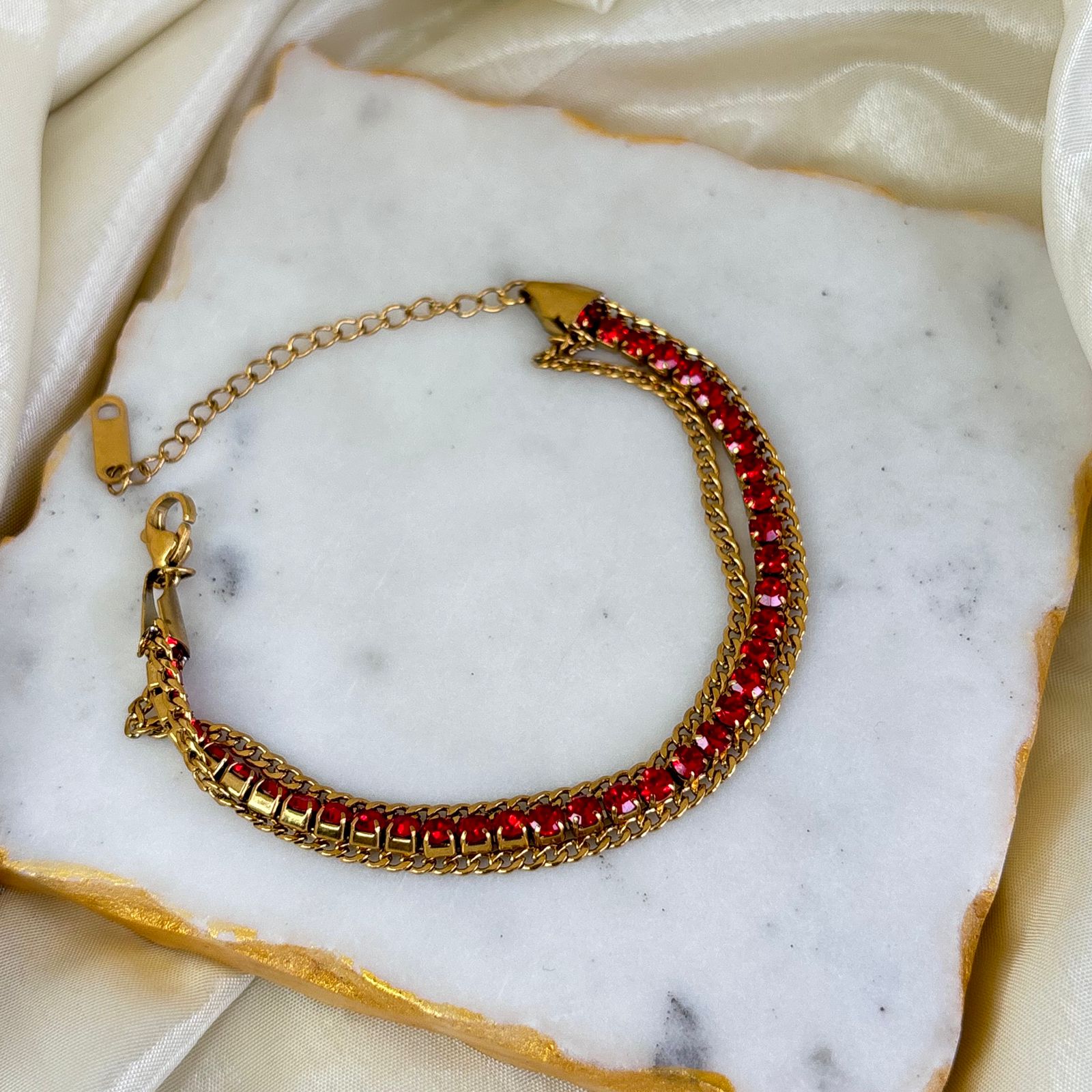 Red Tennis 3 Layered Chain Bracelet